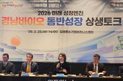 (원투원뉴스) 경상남도는 25일 김해중소기업비즈니스센터에서 동부경남(김해·양산)지역 바이오기업인들과 함께 ‘2026 미래 성장엔진 경남바이오 동반성장 상생토크’를 개최했다. 이번 행사는 경남바이오 산업의 성장 방향을 공유하고, 기업 현장의 애로사항을 직접 청취해 실질적인 지원 방안을 논의하기 위해 열렸다. 행사에는 바이오기업과 김해·양산시 관계자, 경남항노화연구원, 경남테크노파크, 김해의생명산업진흥원 등 100여 명이 참석해 2026년도 경상남도 산업정책 설명과 기업 성장사례 발표, 현장 애로사항 청취가 이어졌다. 경남도는 ‘첨단바이오항노화산업 혁신거점, 경남’을 비전으로 첨단 인프라 확충과 연구개발 혁신, 산업 생태계 활성화 등을 위한 38개 과제를 중장기적으로 추진할 계획이라고 밝혔다. 이어 연구개발부터 제품화 단계까지 지자체와 지역연구기관과의 협력을 통해 가시적인 성과를 거둔 2개 기업 성장 사례가 소개됐다. 헬스케어·의료기기 전문기업 타누스케어는 연구개발(R&D) 지원을 통해 시제품을 개발하고 해외시장 진출에 성공한 경험을 공유했다. 의료기기 제조기업 나노덴은 지역 협력기관과 5