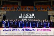 (원투원뉴스) 진주시 자원봉사단체협의회(회장 심명환)는 6일 진주실내체육관에서 자원봉사자와 시민 등 2300여 명이 참석한 가운데 ‘2025 진주시 자원봉사자의 날 기념 한마음대회’를 성황리에 개최했다. 이번 행사는 자원봉사의 날(12월 5일)을 앞두고 마련된 자리로 한 해 동안 지역 곳곳에서 헌신과 나눔을 실천한 자원봉사자들의 노고를 격려하고, 시민과 함께 자원봉사의 가치와 의미를 되새기는 뜻깊은 시간이 됐다. 이날 행사에서는 △그동안 지역사회를 위해 힘쓴 봉사단체의 단체기 입장 △1년간의 자원봉사 활동 영상 상영 △유공자 표창 △감사 메시지 퍼포먼스 △단체별 장기자랑 등이 이어지며 웃음과 감동이 함께했다. 심명환 자원봉사단체협의회 회장은“11만 자원봉사자들이 진주시 곳곳에서 진심으로 헌신하고 있다”며“여러분들이야말로 진주의 희망이자 자랑”이라고 말했다. 조규일 진주시장은 “보이지 않는 곳에서 진심으로 봉사해 주신 모든 분들 덕분에 진주가 더욱 행복한 도시로 빛나고 있다”며, “앞으로도 자원봉사활동이 더욱 활발히 이어질 수 있도록 행정적 지원을 아끼지 않겠다”고 말했다. 한편 현재 진