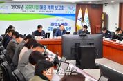 (원투원뉴스) 장성군이 올해 공모사업 발굴을 위해 전략적인 대응에 나섰다. 군은 24일 군청 상황실에서 김한종 군수 주재로 ‘2026년도 공모사업 대응계획 보고회’를 열었다. 보고회에선 올해 중앙부처·전라남도 공모사업 등을 총망라해 선정한 추진 가능 사업 38건(총사업비 1676억 원)에 대한 설명과 추진 계획 공유, 사업 타당성 검토 등이 이뤄졌다. 이 가운데 지역 내에 ‘혁신 창업 클러스터’를 구축하는 ‘스타트업 파크’ 조성사업과 ‘피톤치드 체험랜드’의 가치를 재발견하는 지역관광 개발사업, 도시 브랜드를 강화하는 공공디자인 특화거리 조성사업에 대한 논의가 활발하게 펼쳐져 높은 관심도를 엿볼 수 있었다. 지난해 선정된 공모사업 39건(총사업비 1285억 원)에 대해서는 지역 발전으로 이어질 수 있도록 차질 없는 시행과 사후 관리에 집중하기로 했다. 김한종 장성군수는 “한정된 지방재정 여건 속에서 외부 재원 확보의 중요성이 나날이 커지고 있다”며 “앞으로도 공모사업을 지역 발전 견인의 전략적 도구로 활용하겠다”고 말했다.