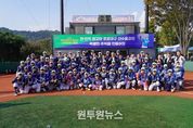 (원투원뉴스) 지난 25일, 충남 홍성군 결성면 만해야구장에서 제3회 ‘홍성군과 함께하는 2025 김태균 야구캠프’가 성황리에 개최됐다. 전국에서 모인 유망주 52명과 KBO 리그 스타 선수 9명이 참가해 하루 종일 뜨거운 열정을 쏟으며 뜻깊은 시간을 보냈다. 김태균 해설위원과 이용록 홍성군수, 코치진과 내빈 소개로 막을 올린 개회식은 참가 선수들의 기대감 속에 활기차게 진행됐다. 이날 캠프에는 한화 김진영, KT 고영표, 허경민, 키움 송성문, 두산 정수빈, NC 박건우, 기아 김태군, 양현종, 최형우 등 KBO 리그 스타 선수 9명이 코치진으로 참여해 참가 선수들을 지도했으며, 개회식 직후 전문 트레이너와 함께 포지션별 맞춤 훈련이 시작됐다. 투수, 포수, 내야수, 외야수 전 포지션에서 스타 선수들의 세밀한 지도와 노하우가 이어지며 참가 선수들은 기술과 경기 감각을 한층 끌어올렸다. 오후에는 이용록 홍성군수의 시구와 김태균 해설위원의 시타로 실전 경기가 시작됐다. 참가 선수들은 훈련에서 배운 기술을 경기 속에서 적용하며 적극적인 플레이를 펼쳤으며, 경기 내내 현장은 열기와 환호로 가득했고 선수들은 긴장과 설렘 속에서도