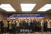 (원투원뉴스) 광주광역시는 16일 라마다플라자 광주호텔에서 한국전자기술연구원, 광주미래차모빌리티진흥원과 함께 ‘미래차 AIDX 혁신 협의체 출범식’을 열었다. 출범식에는 광주시, 광주과학기술원, 한국전자기술연구원, 한국광기술원, 광주미래차모빌리티진흥원, 국방기술진흥연구원, 한국생산기술연구원, 조양정밀공업㈜, 코비코㈜, DH오토웨어㈜, 한국알프스㈜, ㈔인공지능산학연협회 등에서 협의체 위원과 업계 관계자 30여 명이 참석했다. 협의체는 자동차 산업이 급속하게 인공지능(AI) 기반으로 전환함에 따라 산·학·연·관 전문가들과 함께 지역 미래차 산업의 대응 방안을 모색하기 위해 출범했다. 협의체는 인공지능 기반 자동차(AIDV)·공장(AIDF)·국방자동차(M.AIDV) 등 3개 분과로 구성, 각 분야 대응방안을 논의하기로 했다. 이날 1차 회의에서 협의체 구성원들은 인공지능 기술을 자동차 제조공정에 적용하기 위한 ‘피지컬 AI 기반 제조혁신공장 실증 지원’을 2027년 신규 국비 과제로 제안했다. 이날 출범식에서는 정구민 국민대학교 교수가 ‘글로벌 인공지능 기반 자동차(AIDV) 산업 동향’ 기