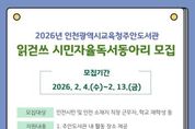 (원투원뉴스) 인천광역시교육청주안도서관은 지역주민의 자발적 독서문화 확산을 위하여 2월 4일부터‘2026년 읽걷쓰 시민자율독서동아리’를 모집한다. 이번 모집은 시민이 주체가 되어 독서, 토론, 글쓰기 등 다양한 활동을 펼치는 동아리를 발굴·육성하기 위해 마련했으며, 선정된 동아리에는 활동을 위한 도서와 공간, 운영 물품을 지원하는 등 다양한 혜택을 제공할 예정이다. 모집에 대한 자세한 사항은 주안도서관 누리집을 확인하거나 독서문화과로 문의하면 된다.