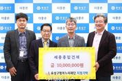 (원투원뉴스) 대전 유성구는 세종종합건재가 유성구 행복누리재단에 후원금 1,000만 원을 기탁했다고 4일 밝혔다. 기탁된 후원금은 노인대학의 문화예술 공연 지원사업 등 노인 여가 활동 프로그램 지원을 위해 활용될 예정이다. 김병철 대표는 “이번 후원금이 지역 어르신들이 활기차고 건강한 노년을 보내는 데 도움이 되길 바란다”라며 “앞으로도 지역사회와 함께하는 나눔 활동을 이어가겠다”라고 말했다. 정용래 유성구청장은 “세종종합건재의 지속적인 나눔 실천에 감사드린다”라며 “앞으로도 어르신들의 삶의 질 향상을 위해 민관이 함께 노력하겠다”라고 말했다. 세종종합건재는 지난 2021년부터 KF94 마스크 1만 매와 후원금 1,500만 원 등을 기탁하며 지역 복지 향상을 위해 사회공헌 활동을 이어오고 있다.