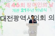 (원투원뉴스) 대전시의회 조원휘 의장은 9일 제46회 장애인의 날 및 유성구장애인종합복지관 21주년 기념식에 참석해 장애에 대한 편견을 허물고 지역 공동체의 결속을 다지는 계기를 마련했다. 이날 행사에는 장애인 가족과 자원봉사자, 후원기관 관계자 등 800여 명이 참석했으며, 식전공연을 시작으로 유공자 시상, 경품추첨, 기념품 증정까지 다채로운 프로그램으로 꾸며졌다. 조원휘 의장은 축사를 통해 "표창을 받으신 분들의 미소에서 대전의 희망을 보았다"며 "대전시민 100명 중 5명, 유성구에만 만 이천여 명의 구민이 장애와 함께 살아가고 계신다"고 말했다. 이어 "장애는 약 88%가 후천적 원인인 만큼, 장애인 복지는 특정 누군가의 문제가 아닌 우리 모두의 내일을 준비하는 일"이라고 강조했다. 또한 "여러분이 행복해야 대전이 행복하다"며 "시의회는 누구도 소외되지 않는 '평등한 대전'을 위해 든든한 동행자가 되겠다"고 밝혔다.