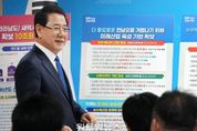 (원투원뉴스) 김영록 전라남도지사는 8일 “올해 초 나라가 백척간두 위기에서 출발했지만, 새정부 탄생 이후 모두가 숨가쁘게 노력한 결과 전남은 단군이래 최대 황금찬스를 맞았다. 기회를 잘 살려 진짜 황금으로 만들자”고 당부했다. 김영록 지사는 이날 오전 도청 왕인실에서 12월 정례조회를 통해 “비상 시국상황에서 호남이 나라의 근본을 지키고 잘 극복하면서 이재명 국민주권정부 탄생의 밑바탕이 됐고, 이에 대통령이 ‘호남의 특별한 희생에 대한 특별한 보상을 하겠다’며 전남에 탄탄대로의 길을 만들어줬다”고 지난 1년을 회상했다. 실제로 전남도는 올 한 해 ▲2018년 6조 원대였던 국비 확보액이 2026년 10조 돌파 ▲오픈AI와 SK그룹의 글로벌 AI 데이터센터, 삼성SDS의 국가 AI 컴퓨팅센터 등 대한민국 AI 에너지 수도 도약 기반 마련 ▲인공태양 연구시설 유치 ▲2026 유엔기후변화협약 기후주간 국내 후보지에 여수 선정 ▲유튜브 10만 구독자 돌파와 조회수 100만 회 돌파 콘텐츠 탄생 등 다양한 분야에서 괄목할 만한 성과를 거뒀다. 이같은 황금 찬스가 저절로 찾아온 것이 아니라는 점도 분명히 했다. 김영록