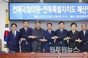 (원투원뉴스) 전북특별자치도가 30일 서울 국회의원회관에서 지역 국회의원 및 연고 국회의원 예산정책협의회를 연이어 개최했다. 2026년도 국가예산 국회단계 증액 확보를 위한 전방위 공조 체제를 본격 가동한 것이다. 오전 지역 국회의원 협의회와 정오 연고 국회의원 협의회로 나뉘어 진행된 이번 회의에서 김관영 지사는 도정 주요현안과 부처별 건의사업을 공유했다. 전북 지역 국회의원 예산정책협의회에서는 국회단계 증액이 필요한 주요사업의 역할분담을 모색했다. 효과적인 반영 전략을 수립하기 위해서다. 도는 올해 정부안 9조 4,585억 원을 확보했다. 하지만 새만금·AI·문화·복지 등 핵심 분야에서 과소·미반영된 70대 중점사업의 국회단계 반영 필요성을 강조했다. 특히 ▲국립모두예술콤플렉스 건립 ▲AI 융합 영화·영상 실증지원센터 건립 ▲협업지능 피지컬AI 기반 SW플랫폼 조성 ▲국립 의용소방대 연수원 건립 ▲새만금 국가정원 조성 ▲국립익산식품박물관 건립 ▲동물의약품 임상시험센터 구축 ▲기초연구인프라 연구시설 구축 ▲AI 기반 차세대 엑소좀 기술 및 표준화 개발 ▲전북 혁신도시 종합사회복지관 건립 등 지역구별