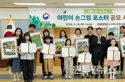(원투원뉴스) 산림청은 정부대전청사에서 제81회 식목일 어린이 손그림 포스터 공모 시상식을 개최했다고 26일 밝혔다. 올해 처음 실시된 식목일 어린이 손그림 포스터 공모는 지난 1월 2일부터 1월 16일까지 접수가 진행됐으며, 내·외부 전문가 평가위원으로 구성된 심사위원회의 심사를 거쳐 최우수 1명, 우수 1명, 장려 5명 등 총 7명이 선정됐다. 최우수작은 최이서 어린이(부산 센텀초)의 ‘나무가 있어 우리가 자라고 우리가 있어 나무를 심는다.’가 차지했고, 우수작은 윤제이 어린이(세종 산울유치원)의 ‘한 그루의 기억이 숲이 되다.’가 선정됐다. 이번에 선정된 최우수작 및 우수작은 올해 전국에서 공통으로 사용되는 제81회 식목일 공식 포스터로 활용된다. 산림청은 모든 국민이 나무심기의 중요성을 깨닫고 참여를 확대하기 위해 범국민 나무심기도 함께 진행한다. 박은식 산림청장은 “어린이들의 예쁜 마음이 담긴 그림들을 배경으로 시상식을 갖게 되어 정말 기쁘다.”며, “어린이들이 도화지에 푸른 꿈을 그려 넣었듯이 산림청도 어린이들이 마음껏 뛰어놀 수 있는 안전하고 행복한 숲을 만들기 위해 최선을 다하겠다.”