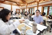 (원투원뉴스) 대전 동구는 13일 이사동 유교전통의례관 대전별서에서 관내 어린이집 영유아 부모를 대상으로 전통 다도와 향 체험을 결합한 ‘차향유정(茶香有情) 차와 향기를 나누다’ 프로그램을 운영했다고 밝혔다. 이번 프로그램은 육아로 지친 부모들이 바쁜 일상 속에서 잠시나마 자신을 돌보고 내면의 평온을 되찾을 수 있도록 기획된 힐링 프로그램으로, 총 3회에 걸쳐 운영될 예정이다. 첫 회차인 이날 체험에는 박희조 동구청장을 비롯해 영유아 부모 20여 명이 참여해 전문 강사의 지도 아래 차를 우리고 마시는 전통 다도 예절을 배우고, 전통 향을 활용한 명상 활동을 통해 감각을 깨우며 마음을 다스리는 시간을 가졌다. 특히, 단순한 체험을 넘어 전통문화의 정취를 느끼고 바쁜 육아 생활 속에서 마음의 여유를 되찾는 의미 있는 시간으로 꾸며져 참여자들의 큰 호응을 얻었다. 박희조 동구청장은 “이번 다도체험을 통해 부모님들이 짧지만 깊은 쉼 속에서 마음의 여유를 되찾는 시간이 됐길 바란다”며 “앞으로도 전통문화를 쉽고 친근하게 접할 수 있는 다양한 프로그램을 지속적으로 발굴해 나가겠다”고 말했다. 한편