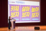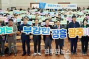 (원투원뉴스) 광주광역시는 5일 장흥군민회관 대회의실에서 ‘광주전남 통합 장흥군 상생토크’를 열고, 광주전남 통합의 필요성과 장흥 발전 방안에 대해 군민들과 소통했다. 이날 상생토크에는 강기정 광주시장과 김성 장흥군수, 도·군의원, 장흥군민 등 300여 명이 참석해 광주전남 통합에 대한 높은 관심을 보였다. 강기정 광주시장은 광주전남 통합 추진상황과 향후 일정, 정부 지원 특전(인센티브) 등을 설명하며 통합 의지를 밝혔다. 이어 장흥군과 관련한 특별법안 특례조항을 소개하며 지역 맞춤형 발전 전략을 제시했다. 주요 내용으로는 ▲‘햇빛연금’, ‘바람연금’ 등 신재생에너지 기반 확대 ▲문학관광기행특구 활성화 ▲그린바이오 산업 고부가가치 상품 개발 ▲광주-화순-장흥을 잇는 바이오 의료벨트 조성 ▲인공지능(AI)·반도체 인재양성 프로그램 확대 ▲통합 광역생활권 구축 등이 포함됐다. 강 시장은 특히 이청준, 한승원 작가를 비롯해 노벨문학상을 받은 한강 작가의 문학적 탯줄과 같은 장흥에 문학·관광·교육을 접목한 문학관광기행특구를 활성화하겠다고 밝혔다. 이어 강 시장은 “광주의 복합쇼핑몰