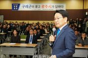 (원투원뉴스) 광주광역시는 6일 구례군 백두대간생태교육장 세미나실에서 ‘광주전남 통합 구례군 상생토크’를 열고, 구례 발전 전략과 통합 이후 변화에 대해 구례군민들과 소통했다. 이날 상생토크는 전남 시·군을 순회하며 진행 중인 열 번째 자리로, 지리산과 섬진강 등 구례군의 천혜 생태 자원과 천년문화자산을 활용한 광주·전남의 균형발전 방향을 모색하기 위해 마련됐다. 이날 행사에는 강기정 광주시장을 비롯해 오수미 구례군 부군수, 읍면 주민대표, 구례군민 등 120여 명이 참석해 광주전남 통합 추진에 대한 높은 관심을 보였다. 강기정 시장은 광주전남 통합 추진 상황과 향후 일정, 통합에 대한 정부 특전(인센티브) 등을 설명하며 통합의 추진 의지를 밝혔다. 이어 구례군과 관련된 특별법안 특례조항으로 ▲생태관광 활성화 지원 ▲문화유산 보존 및 활용 ▲지역 교통 기반시설 개선 등을 소개했다. 특히 구례의 풍부한 자연환경과 문화유산을 기반으로 생태관광과 문화산업을 육성하고, 광주와 협력을 통해 지역 발전을 이끌겠다는 구상을 밝혔다. 강 시장은 ▲전라선 고속화 등 광역교통망 확충 ▲유기농산업 등 농·수·축산업과