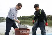 (원투원뉴스) 김동연 지사가 이번에는 달달투어 도중 ‘한탄강 청년어부’를 만났다. 바다에서 하는 어업 외에 내수면어업(육지의 하천, 호수 같은 담수에서 이뤄지는 어업)을 지원하겠다는 메시지였다. ‘한탄강 청년어부’는 구독자 17만 명을 자랑하는 유튜브 채널 이름이자 운영자인 1988년생 김은범씨의 닉네임이기도 하다. 오늘 김 지사는 임진강(임진강은 한탄강과 같은 줄기) 수위 점검을 한 뒤 조업을 마치고 돌아온 한탄강 청년어부의 고깃배 ‘왕건1호’에 성큼 올라섰다. 청년어부가 활어통 뚜껑을 열어 갓 잡아온 물고기를 뜰채로 들어올려 김 지사에게 보여줬다. 만선까지는 아니어도 활어통에는 물고기가 가득 담겨 있었다. 메기,쏘가리, 장어, 빠가사리 등도 보였다. 청년어부 김은범씨가 또 한 개의 활어통을 열자 참게가 그득했다. 김 지사는 청년어부와 함께 어획한 참게를 자동차로 옮겨 실었다. 청년어부 김은범 씨는 한탄강(또는 임진강)에서 직접 잡은 물고기로 밀키트를 제작해 온라인 판매하고 있다. 전국에서 민물고기로 밀키트를 만든 것은 그가 처음이라고 한다. 한탄강 어획물로 다양한 가공