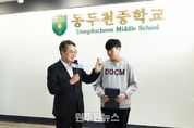 (원투원뉴스) 김동연 경기도지사가 16일 동두천중학교를 찾아 노점 할머니께 비상금을 건넨 선행으로 화제가 된 옥현일 군에게 표창을 수여했다. 김 지사는 학교 현관에서 학생회와 함께 ‘함께라서 더 빛나는 우리’ 생명존중 캠페인에 동참하고, 이어 1층 로비에서 옥현일 군에게 표창장을 전달했다. 옥현일 군은 지난 7월 폭염 속에서 노점상 할머니에게 비상금 3만 원을 건네고 콩 한 봉지를 받은 사연이 알려지며 주목받았다. SNS에 게시된 영상은 인근 공방 운영자가 촬영한 것으로, 현일 군이 남모르게 베푼 선행이 담겨 3일 만에 206만 조회수, ‘좋아요’ 약 7만, 댓글 2,500개 이상을 기록했다. 당시 현일 군은 “더운 날씨에 할머니가 물건을 빨리 팔고 쉬셨으면 좋겠다는 마음이었다”고 말해 많은 시민에게 감동을 줬다. 김동연 지사는 이날 인사말을 통해 “옥현일 군이 도운 할머니가 우리의 어머니, 할머니”라며 “수많은 옥현일 군이 동두천중에 있다고 본다. 그것이 사람 사는 세상”이라고 말했다. 이어 “여러분이 그런 따뜻한 마음을 갖길 바란다. 당장은 남을 위한 배려 같지만 길게 봐서 인생에서