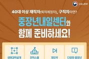 (원투원뉴스) 40대 이상 재직자(퇴직예정자), 구직자라면? 중장년내일센터와 함께 준비하세요! - 생애경력설계 프로그램 : 직업역량, 가치관 분석 등 미래 경력 대안 탐색 지원 - 전직스쿨 프로그램 : 변화 관리 및 취업·전직 가능성 제시 - 재도약 프로그램 : 구직의욕 고취 및 구직 스킬 향상 지원 - 다양한 중장년 정책 안내 : 일경험, 지원금, 일자리 등 정보제공 · 비용 부담 ZERO! 전액 무료! · 간편한 온라인 신청 가능! 전국 38개 중장년내일센터로 오세용!
