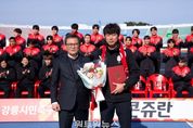 (원투원뉴스) FC강릉(재단법인 강릉시민축구단)은 2026시즌을 앞두고 직무대행 체제였던 감독직위에 임다한 감독을 임명하여, 새 시즌을 향한 팀 운영 체제를 완성했다. 구단은 2026년 1월 30일, 임다한 감독 임명식을 개최했다. 이날 FC강릉 이사장인 김홍규 강릉시장이 직접 임명장을 수여하며, 감독 직무대행 체제로 운영되던 팀이 정식 감독 체제로 전환했음을 대외적으로 분명히 했다. 임다한 감독의 선임을 계기로 FC강릉은 2026시즌을 향한 지휘 체계를 명확히 정립하고, 전지훈련을 포함한 시즌 준비에 속도감 있게 돌입할 계획이다. 임명식 직후에는 2026시즌을 대비해 구성이 완료된 선수단(40명: 코치8, 선수단32)의 첫 공식 행사로 단체사진 촬영이 이어졌다. 이번 행사는 완성된 선수단의 현재 모습을 대중에게 처음 선보이는 자리로, 2026시즌 FC강릉의 출발을 상징하는 장면이 될 전망이다. 또한 김홍규 이사장은 전지훈련을 앞둔 선수단에게 격려와 응원의 메시지를 전하며 선전을 당부했고, 선수단 역시 새 시즌을 향한 각오와 결의를 다지는 시간을 가졌다. FC강릉 최윤순 단장은 “정식