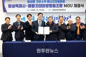 (원투원뉴스) 화성특례시는 16일 시청 중앙회의실에서 마파지태양광협동조합과 ‘화성형 기본소득 에너지자립마을 조성을 위한 업무협약(MOU)’을 체결했다. 이날 협약식에는 정명근 화성특례시장을 비롯해 김진원 마파지태양광 협동조합장 등이 참석해, 주민주도형 재생에너지 기반 에너지자립마을 조성사업의 추진에 상호 협력하기로 했다. 이번 사업은 국유지를 활용해 주민이 사업비 전액을 부담해 100% 주민주도형 ‘에너지자립마을’을 조성하는 경기도 최초 사례로, 재생에너지 수익을 마을 복지와 기본소득으로 연계하는 ‘화성형 기본사회’ 정책의 첫 시범 모델이다. 마파지태양광협동조합은 석포6리 주민 25가구가 공동 운영하는 협동조합으로, 사업주체로서 장안면 석포리 823번지 제방 국유지에 415kW 규모의 태양광 발전설비를 설치한다. 사업비는 총 5억 2천만 원으로 전액을 주민이 자부담한다. 시는 협약에 따라 인허가, 관계기관 협의, 제도 검토 등 사업 추진에 필요한 행정적·제도적 지원을 담당하고, 에너지자립마을이 안정적으로 운영될 수 있도록 정책적 기반 마련에 협력한다. 또한 재생에너지 수익이 마을 복지와