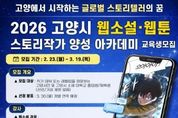 (원투원뉴스) 고양산업진흥원이 웹콘텐츠 산업을 이끌어갈 스토리 전문 인재 발굴을 위한 ‘2026 고양시 웹소설·웹툰 스토리작가 양성 아카데미’ 교육생을 모집한다. 이번 교육과정은 진흥원과 스토리 콘텐츠 분야 전문가들로 구성된 한국만화스토리협회와 협업해, 고양시 작가 지망생들의 데뷔를 목표로 이도경, 김양수, 송향희 등 현역 작가들이 다양한 창작 노하우를 공유할 예정이다. 스토리 작가 데뷔에 관심 있는 고양시민, 고양시 소재 대학교 재학생·졸업생을 대상으로 하며, 오는 3월 19일까지 이메일로 신청하면 된다. 교육은 4월 10일부터 매주 금요일 총 10회에 걸쳐 진행되며, 자세한 내용은 포스터 내 QR코드 또는 진흥원 누리집에서 확인할 수 있다. 진흥원은 웹툰·웹소설 등 부가가치가 큰 웹콘텐츠 IP를 발굴하고, 우수한 창작 인재 양성을 위한 교육 사업을 추진하고 있다. 특히 ‘IP융복합 콘텐츠 클러스터’조성을 통해 고양시 특화 웹콘텐츠 산업을 지속적으로 육성해 나갈 계획이다.