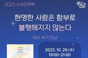 (원투원뉴스) 인천광역시교육청서구도서관은 10월 29일 오후 7시부터 9시까지 『어른의 행복은 조용하다』의 저자 태수 작가를 초청해 ‘수요인문학’ 강연 ‘현명한 사람은 함부로 불행해지지 않는다’를 진행한다. ‘수요인문학’은 서구도서관이 2020년부터 운영해온 대표 인문학 프로그램으로, 올해 하반기부터는 대면과 비대면 방식을 병행해 운영되고 있다. 이번 강연은 함께읽기 프로그램과 연계해 도서관 1층 북카페에서 진행되며, 태수 작가가 일상 속 작은 행복과 마음의 균형을 주제로 강연한다. 참가 신청은 10월 17일 오전 10시부터 가능하며, 자세한 사항은 서구도서관 누리집 또는 독서문화과로 문의하면 된다.