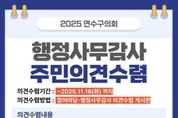 (원투원뉴스) 인천광역시 연수구의회는 2025년 행정사무감사를 앞두고 주민들의 의견을 11월 18일까지 받는다. 매년 실시되는 이번 행정사무감사는 연수구 행정의 문제점을 점검하고 개선 방안을 모색하기 위한 중요한 의정 활동이다. 주민들은 위법 또는 부당한 행정행위, 제도 개선 요구사항, 예산 집행의 낭비 사례, 구민 불편사항, 그리고 구정 시책에 대한 건의사항 등을 자유롭게 제시할 수 있으며, 접수된 의견은 행정사무감사에 적극 반영되어 의정활동 자료로 활용된다. 다만, 사생활 침해 우려가 있거나 재판·수사 중인 사항, 특정 개인의 이익에 국한된 내용, 인신공격·허위·비방 등 부적절한 의견은 제외되며, 주민들은 연수구의회 홈페이지‘참여마당’내‘행정사무감사 의견수렴 게시판’을 통해 의견을 제출할 수 있다. 박현주 의장은 “주민들의 다양한 목소리가 행정에 반영되고, 더욱 투명하고 책임 있는 의정 활동이 이루어질 수 있도록 최선을 다하겠다”고 말했다.