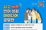 (원투원뉴스) 경상국립대학교(GNU·총장 권진회) 국어문화원(원장 정영훈 국어국문학과 교수)은 ‘경남 우리말 가꿈이 활동 지원 사업’의 일환으로 ‘쉽고 바른 언어생활 아이디어 공모전’을 개최한다. ‘경남 우리말 가꿈이 활동 지원 사업’은 우리말과 우리글을 바르게 사용하도록 알리는 언어문화 개선 운동으로, 경상국립대학교 국어문화원에서는 10년째 이 사업을 이어 오고 있다. 이번 공모전은, 경상남도 내 대학생을 대상으로 올바른 언어문화 확산에 기여할 수 있는 실용적·창의적인 아이디어를 발굴하고자 마련했다. 공모 주제는 ▲쉽고 바른 공공언어 사용 확산 방안 ▲공공기관 언어 개선 방안 ▲세대 간 원활한 소통을 위한 방안 등으로, 일상과 공공 영역에서 누구나 이해하기 쉬운 언어환경을 조성할 다양한 제안을 제출하면 된다. 제출 기간은 11월 3일부터 30일까지이다. 참가 희망자는 공모 주제에 맞는 아이디어 제안서를 작성해 전자우편(ckc@gnu.ac.kr)으로 제출하면 된다. 자세한 내용은 경상국립대학교 국어문화원 누리집에서 확인할 수 있다. 선정 결과는 12월 12일에 국어문화원 누리집에서 발표한다. 으뜸상 1명(또는