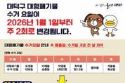 (원투원뉴스) 대전 대덕구는 주민 생활편의를 높이고 불법투기를 예방하기 위해 2026년 1월부터 대형폐기물 수거일을 동별 주 2회로 확대 운영한다. 그동안 대덕구는 대형폐기물을 주 1회 수거해 왔으나, 배출 시기와 수거 일정이 맞지 않아 주민 불편이 이어져 왔다. 이에 구는 주민 의견과 현장 여건을 반영해 모든 동을 대상으로 주 2회 수거 체계로 전환하기로 했다. 수거는 월요일부터 토요일까지 평일 기준으로 운영되며, 동별 수거 요일은 대덕구 누리집과 행정복지센터 게시판, 안내 현수막 등을 통해 사전에 안내된다. 신청 방법은 기존과 동일하게 인터넷 배출신고(대덕구 홈페이지) 또는 전화 접수를 통해 가능하며, 대덕구 자원순환센터가 수거를 담당한다. 수거 대상은 가구, 가전제품, 이불 등 종량제 봉투로 배출이 어려운 대형 폐기물로, 신고 후 스티커를 부착하면 된다. 대덕구는 이번 수거 주기 확대를 통해 장기간 배출 대기 문제를 해소하고 무단투기와 방치 사례가 크게 줄어들 것으로 기대하고 있다. 최충규 대덕구청장은 “주민이 체감하는 생활환경 개선이 무엇보다 중요하다”며