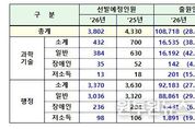 (원투원뉴스) 2026년도 국가공무원 9급 공개경쟁채용 선발시험의 평균 경쟁률이 28.6대 1로 집계됐다. 인사혁신처(처장 최동석)는 지난 2~6일 9급 공채 선발시험 응시원서를 접수한 결과 선발 예정 인원 3,802명에 10만 8,718명이 지원해 평균 28.6대 1의 경쟁률을 보였다고 7일 밝혔다. 올해는 선발 예정 인원이 지난해 대비 감소했으나 응시원서 제출 인원은 지난해보다 3,607명, 3.4% 증가해 경쟁률이 4.3 대 1 높아졌다. 모집직군별 경쟁률은 9급 과학기술직군 38.3대 1, 9급 행정직군 27.4대 1로 각각 나타났다. 세부 모집단위별 경쟁률은 과학기술직군에서 시설직(시설조경)이 189.0대 1로, 행정직군에서는 행정직(교육행정)이 509.4대 1로 각각 가장 높은 경쟁률을 기록했다. 선발 예정 규모가 큰 모집 단위로는 과학기술직군의 전산직(전산개발:일반)이 75명 선발 예정에 3,104명이 지원해 41.4대 1의 경쟁률을, 농업직(일반농업:일반)이 53명 선발 예정에 1,610명이 지원해 30.4대 1의 경쟁률을 보였다. 행정직군에서는 세무직(세무
