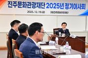 (원투원뉴스) (재)진주문화관광재단은 지난 19일 진주시청 5층 상황실에서 조규일 이사장을 비롯한 임원들이 참석한 가운데 ‘2025년 정기이사회’를 개최했다. 이번 이사회에서는 ▲2025년 주요업무 추진실적 ▲2026년 사업계획 보고 ▲2026년 재단 예산편성안 ▲기금운용 계획안 등이 의결됐으며, 진주시의 문화예술과 관광산업, 그리고 재단 발전을 위한 다양한 의견들이 논의됐다. 2026년 진주문화관광재단의 예산은 150억 원 규모이며, 기금 지원사업을 비롯한 고유목적사업 20개와 2026 국가유산미디어아트를 비롯한 7개의 위탁사업을 추진할 계획이다. 특히 내년에는 ‘빛 담은 문화도시 진주’ 2년 차를 맞아 실크와 유등, 캐릭터 등 대표 콘텐츠의 활성화와 문화상품의 홍보마케팅 지원 등 문화콘텐츠 고도화 사업을 추진하고, 관광객 유치를 위한 상품개발과 홍보마케팅을 강화해 나갈 예정이다. 조규일 이사장은 “진주문화관광재단은 21년 설립 이후 4년 동안 진주를 문화예술로 행복하고, 관광으로 빛나는 부강한 도시로 만들기 위해 노력해 많은 성과를 이뤄냈다”며, “2026년에도 시민을 위한 문화관광 전문기관으로서 지역문화와