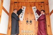 (원투원뉴스) 박강수 마포구청장은 2월 4일 오전, 광흥당(독막로21길 15)에서 열린 입춘축 게첩 행사에 참석해 새봄의 시작을 알리고 구민의 안녕과 한 해의 평안을 기원했다. 입춘축은 한 해 첫 절기인 입춘을 맞아 새봄을 알리고 새해의 복을 기원하며, 집 대문이나 기둥, 벽 등에 글귀를 써 붙이는 전통 풍습이다. 이날 행사는 마포문화원이 주최한 전통 세시 행사로, 전통문화를 계승하고 입춘의 의미를 함께 나누기 위해 마련됐다. 박 구청장은 행사에 앞서 한복 두루마기를 착용한 뒤, 마포문화원장 등 참석자들과 함께 입춘축을 광흥당 대문에 게첩하고 기념촬영을 진행했다. 박강수 마포구청장은 “입춘축 게첩은 계절의 변화를 알리는 동시에, 새로운 한 해를 향한 희망과 다짐을 되새기는 의미 있는 전통”이라며, “입춘의 좋은 기운이 마포 곳곳에 퍼져 마포구민 모두가 건강하고 평안한 한 해가 되길 바란다”고 말했다.