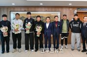 (원투원뉴스) 영주시는 지난 3일 시청 부시장실에서 제106회 전국체육대회에서 우수한 성적을 거둔 영주제일고등학교 사이클부를 초청해 격려 간담회를 개최했다. 이번 간담회에는 최강호 영주제일고 교장, 사이클부 감독 및 학생 등 10여 명이 참석했다. 시는 전국체전에서의 우수 성과를 축하하고, 앞으로의 훈련과 경기에서도 지역의 명예를 더욱 높여줄 것을 다짐했다. 영주제일고 사이클부는 지난 10월 17일부터 23일까지 부산광역시 일원에서 열린 제106회 전국체육대회에서 △금메달 3개(4km 단체추발, 개인도로 단체, 경륜) △은메달 2개(1km 개인독주, 3km 개인추발) △동메달 1개(단체스프린트) 등 총 6개의 메달을 획득하며 뛰어난 기량을 선보였다. 특히 3학년 서지훈 학생과 2학년 윤석현 선수가 다수 종목에서 메달을 획득하며 팀의 종합 성적을 견인했다. 2005년 창단된 영주제일고 사이클부는 전국대회에서 꾸준히 우수한 성과를 거두고 있으며, 지난해 제105회 전국체육대회에서도 금메달 3개를 차지한 바 있다. 최강호 영주제일고 교장은 “학생들이 이번 대회에서 보여준 성과는