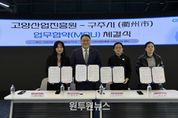 (원투원뉴스) 고양산업진흥원이 지난 10일 오전 고양 스마트시티센터 오픈랩에서 중국 절강성 구주시 상무국과 공동협력을 위한 업무협약(MOU)을 체결했다고 밝혔다. 협약 체결식에는 여민초 구주시 상무국 부국장, 란소방 공상연합회 부주석, 여경창 흥융상무발전유한공사 대표 등 구주시 방한단과 고양산업진흥원 한동균 원장, 최아람 고양투자청장 등이 참석했다. 이날 행사는 ▲양 기관 대표 인사 ▲홍보 동영상 상영 및 기관 소개 ▲업무협약 체결 ▲업무 협의 등의 순으로 진행됐다. 협약을 계기로 정보통신, 콘텐츠 등 산업, 창업, 문화 등 분야에서 공동협력 할 계획이다. 구주시는 절강성 서부에 위치한 인구 230만 명의 도시로 기계, 화학 공업 등이 발달해 있고 한국기업이 진출해 있다. 여민초 부국장은 “고양시의 첨단산업단지 계획과 아쿠아스튜디오 등에 대해 알게 됐다. 양 도시 기업인 간의 협력 활성화를 기대한다.”고 말했다. 한동균 원장은 “오늘 협약이 고양시와 구주시 간 교류의 발판이 되고, 공동 발전할 수 있는 계기가 되길 바란다”고 말했다.
