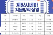 (원투원뉴스) 인천광역시교육청계양도서관은 시민에게 다채로운 영상문화 경험을 제공하기 위해 ‘겨울방학 계양시네마’와 ‘테마 영화 큐레이션 코너’를 운영한다고 29일 밝혔다. 먼저,‘겨울방학 계양시네마’는 휴관일을 제외한 2월 한 달간 운영하며, 계수나무홀에서 온 가족이 즐길 수 있는 다양한 장르의 영화 14편을 상영할 예정이다. 이와 함께 디지털자료실에서는 사서가 선정한 ‘테마 영화 DVD 큐레이션 코너’가 상시 운영된다. 2월의 테마는 ‘고전과 문학’으로, 인문학적 감수성과 깊이 있는 사유를 끌어낼 수 있는 작품을 선별․전시하여 책과 영화가 어우러진 특별한 문화 경험을 제공할 계획이다. 계양도서관 관계자는 “추운 겨울, 도서관에서 영화를 통해 정서적 휴식을 취하고 인문학적 소양을 쌓는 즐거운 시간이 되길 바란다”고 전했다. 자세한 사항은 계양도서관 누리집을 확인하거나 디지털자료실로 문의하면 된다.