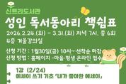 (원투원뉴스) 인천광역시교육청신트리도서관은 성인을 대상으로 글쓰기 기초부터 퇴고까지 체계적인 글쓰기 과정을 함께하는 독서동아리 ‘책쉼표’ 참여자를 모집한다. 이번 프로그램은 책과 글을 매개로 자신을 돌아보는 시간을 갖게 하는 독서동아리로, 에세이 중심의 읽기와 집필 활동을 통해 참여자의 사유와 표현의 폭을 넓히고자 마련했다. 강의는 ‘나라는 사람’, ‘일상의 발견’, ‘기억의 습작’ 등의 주제로 구성되며, 글쓰기의 기초를 다진 뒤 제시된 글감을 바탕으로 초고 작성부터 퇴고 과정까지 직접 실습하며 완성도 있는 글쓰기 역량을 쌓을 수 있도록 운영한다. 프로그램은 2월 24일부터 3월 31일까지 6회에 걸쳐 운영되며, 모집은 1월 30일부터 2월 18일까지 신트리도서관 누리집에서 선착순으로 진행된다. 프로그램 신청 및 운영에 대한 자세한 사항은 신트리도서관 누리집을 확인하거나 독서문화과로 문의하면 된다.