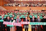 (원투원뉴스) 대전시의회 조원휘 의장은 12일 대전시청에서 개최된 대전충남 행정통합 설명회 및 시민 한마음 촉구대회에 참석해 지방소멸 위기 속에서 진행되는 대전·충남 행정통합 특별법안의 조속한 의결을 시민들과 함께 촉구했다. 이번 행사는 지역을 대표하는 단체·기관장, 민관협의체, 직능·사회단체 등 600여 명이 참석한 가운데 행정통합 홍보영상 상영을 시작으로 주요내빈 인사말씀, 행통통합 설명, 촉구문 낭독 및 퍼포먼스 순으로 진행됐다. 조원휘 의장은 “지방 소멸, 수도권 1극 체제라는 국가적 위기 속에서 행정통합은 대전과 충남의 생존과 미래에 대한 가장 현실적이고 강력한 해답이고, 두 지역이 힘을 모으면 인구 350만 명, 지역내총생산 200조 원의 대한민국 3대 생활권을 이뤄내는 것이다”라면서, “대전시의회는 행정통합특별위원회를 출범해 제도 개선 및 시민 공감대 형성 등 선제적 정책 마련에 총력을 기울여 왔고, 앞으로도 국회와 국가 차원의 협력을 도모해 충청권이 대한민국 100년을 이끌 새로운 성장 축이 되도록 시민들과 함께 힘을 모아 반드시 이뤄내겠다”고 말했다.