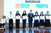 (원투원뉴스) 전라남도는 13일 전남도립도서관 4층에서 ‘책 속에 전남의 미래가 있습니다’를 주제로 문화마루 개관 기념행사를 열었다고 밝혔다. 이날 행사에는 김영록 전남도지사, 전남도의회 윤명희 경관위원장과 나광국·최선국·최미숙 의원, 도내 공공 도서관장 50여 명 등 100여 명이 참석해 개관을 축하했다. 행사에선 ‘히어로 벌룬쇼’와 목포시립합창단의 축하공연을 시작으로 도립도서관의 성장과정과 미래비전을 담은 홍보영상 상영, 2025년 출산 가정 책 전달식, 개관 퍼포먼스 등이 진행됐다. 또한 공공도서관 4곳(순천시립신대, 광양용강, 여수이순신, 화순열린)과 공무원 10명, 자원봉사자 2명, 다독가정에게 도서관 발전유공 표창도 수여됐다. 특히 순천시립신대도서관과 광양용강도서관은 2024년 공공도서관평가에서 최우수 도서관으로 선정되기도 했다. 문화마루는 전남도립도서관 4층 유휴공간(1천252m)를 활용해 북카페, 커뮤니티 공간, 체험 및 전시 공간으로 조성한 복합문화공간이다. 총사업비 33억 원을 투입해 약 2년에 걸쳐 조성됐다. 지난 9월 4일 시범운영을 거쳐 이번에 공식
