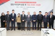 (원투원뉴스) 강원특별자치도는 민선 8기 출범 이후 56개 기업, 1조 8,644억 원 투자, 2,938명 신규고용을 달성했다고 밝혔다. 도는 이 같은 성과를 바탕으로 2월 19일 2026년도 강원 투자정책을 발표하고 도내 투자기업 대표 및 관계자들과 간담회를 가졌다. 특히 기업 유치 실적을 살펴보면, 도가 중점 육성 중인 반도체‧바이오‧미래차‧첨단방위‧핵심광물 등 미래산업 분야가 전체의 58.9%를 차지해 산업 전략이 실제 투자로 이어지고 있는 것으로 나타났다. 도는 올해 20개 기업, 3,800억 원 투자, 1,000여 명 신규 고용 창출을 목표로 투자유치에 박차를 가할 계획이다. - 이날 간담회에는 ㈜알몬티대한중석, ㈜한국정밀소재산업, (주)에이엔티파마, ㈜미코세라믹스, ㈜광덕에이엔티, ㈜넥스트바이오 등 도내 이전 또는 공장 신설을 추진 중인 기업들이 참석해 투자 현황과 애로사항을 공유했다. 김진태 지사는 “강원특별자치도는 규제를 풀고 첨단 미래산업 특례를 확대하기 위해 출범했다”며, “기업이 잘돼야 강원특별자치도도 성장할 수 있다”고 강조했다. 이어 “강원을 선택한