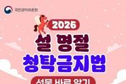 (원투원뉴스) ■ 2026년 설 명절 청탁금지법 선물 바로 알기 하나, 공직자에게 원활한 직무수행 또는 사교·의례 목적으로 제공되는 선물은 5만 원, 농축수산물 및 농축수산가공품 선물은 15만 원까지 가능합니다. 다만, 명절 기간*에 한정하여 농축수산물 및 농축수산가공품 선물은 30만 원까지 허용됩니다. *2026.1.24.(토)~2.22.(일) (30일간), 택배 등으로 발송 시에는 발송일자 기준 둘, 공직자의 직무와 직접적인 이해관계*가 있는 경우에는 가액 범위 내라 하더라도 원활한 직무수행, 사교·의례 목적으로 볼 수 없으므로 공직자에게 일체의 선물도 줄 수 없습니다. *인·허가신청 민원인, 입찰참여 등 유관기관, 인사·평가·감사 대상자 등과 담당 공직자 관계 셋, 농축수산물 선물에는 농산물, 축산물, 수산물뿐만 아니라 임산물도 포함됩니다. 농축수산가공품*은 농축수산물을 원료 또는 재료의 50%를 넘게 사용하여 가공한 제품만 해당합니다. *농축수산가공품 해당 여부는 소관부처인 농림축산식품부, 해양수산부에 문의 넷, 청탁금지법상 선물에 포함되는 상품권은 특정한 물품 또는 용역의 수량이 기재된 물