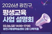 (원투원뉴스) 광진구가 오는 2월 6일 오후 2시 광진구 평생학습센터(자양로15길 60)에서 ‘2026년 광진구 평생교육사업 설명회’를 개최한다. 이번 설명회는 학습동아리, 일상학습관, 성인문해 교육기관 등 유관기관·단체 관계자와 업무 담당자, 평생교육에 관심 있는 구민을 대상으로 진행된다. 지난해의 사업 추진 성과를 공유하고, 2026년 사업 정책 방향과 주요 내용의 전반을 안내할 예정이다. 이와 함께 지역 평생교육 이해관계자의 사업 이해도를 높이고, 현장에서 활용할 수 있는 실무 중심 정보를 제공해 사업 운영 기반을 한층 강화한다. 특히 공모사업 계획서 작성 역량 강화 특강을 진행한다. 강의 주제는 ‘지역을 움직이는 평생학습, 개념 이해부터 사업기획까지’로, ▲평생학습의 기본 개념 ▲지역사회에 미치는 영향과 선순환 효과 ▲평생학습 공모사업 계획서 작성법 등을 다룬다. 설명회에 대한 자세한 문의는 광진구청 평생교육과(02-450-7536)로 하면 된다. 구는 지난해 평생학습센터와 학습나루터 17개소 등을 기반으로 총 22개 사업과 1,382개 프로그램을 운영해 22만 여명이 참여하는 성과를 거뒀다
