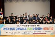 (원투원뉴스) 무주군은 지난 13일 “올림픽 금메달리스트 문대성과 함께하는 태권도 교실”을 진행했다고 밝혔다. 무주군이 주최하고 모두의 예체능이 주관한 이날 행사는 유소년 스포츠 활성화의 일환으로 추진됐으며, 지역 내 초·중·고등학교 태권도 수련 학생들과 일반학생 50명이 참가해 의미를 더했다. 학생들은 ‘2004년 아테네 하계올림픽 태권도 금메달리스트’이자 ‘IOC 선수 위원(2008~2016)’, 2017 무주태권도선수권대회 조직위원회 집행위원을 지낸 문대성 광주대학교 스포츠과학부 석좌교수로부터 태권도 기본자세와 발차기 등을 배우는 시간을 가졌다. 문대성 교수는 송판 격파 체험으로 태권도에 관한 흥미를 이끌어냈으며, ‘레전드와의 만남’에서는 학생들과 기념 촬영을 하며 뜻깊은 추억을 공유했다. 무주중학교 선수부로 활동하고 있는 김민아 학생은 “세계적인 태권도 스타를 무주에서 직접 만나 영광이었다”라며 “동작 하나하나를 전문가에게 직접 지도받을 수 있어 자신감이 생겼다”라고 전했다. 이어 “앞으로 더 열심히 노력해서 훌륭한 태권도인이 되고 싶다”라고 덧붙였다. 한편, 유소년 스포츠 활성
