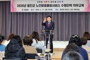 (원투원뉴스) 옹진군은 지난 27일부터 3월 6일까지 군청 6층 중회의실에서 노인맞춤돌봄서비스 수행인력의 전문성 강화를 위한 '2026년 노인맞춤돌봄서비스 사업 직무교육'을 2회에 걸쳐 실시한다고 밝혔다. 이번 교육은 종사자의 직무이해도를 높이고 심리적 부담을 완화함으로써, 도서지역 어른신들에게 보다 안정적이고 지속적인 돌봄서비스를 제공하기 위해 마련됐다. 특히, 직무교육으로 인한 돌봄 공백을 최소화하기 위해 2회 분반으로 운영하며, 회차별 약 30명씩 참여하도록 조정했다. 교육에는 수행인력 60명이 참여하며, 이들은 현재 관내 768명의 돌봄대상 어르신에게 안전 확인, 일상생활지원, 정서 지원 등 맞춤형 서비스를 제공하고 있다. 교육은 대면 집합교육 방식으로 진행되며, 주요 내용은 ▲2026년 노인맞춤돌봄서비스 운영지침 및 제도의 이해 ▲지역사회 통합돌봄 정책과의 연계 및 ‘퇴원 후 단기집중서비스’사업 안내 ▲특화서비스 추진에 따른 돌봄대상자 이해 및 사례관리 방향 등 실무 중심 교육 ▲노인학대 예방교육 등 현장 대응 역량 강화를 위한 과정으로 구성됐다. 문경복 군수는“도서지역 특성상 돌봄인력의