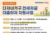 (원투원뉴스) 창원특례시는 세자녀 이상 다자녀가구의 전세자금 대출에 대한 이자 부담을 줄이고 안정적인 주거환경을 조성하기 위해 “창원시 다자녀가구 전세자금 대출이자 지원사업”을 시행한다고 밝혔다. 이 사업은 다자녀 가구의 주거비 부담을 완화하고 재정적 지원을 통해 출산율 제고에 기여하고자 시가 추진하는 사업으로, 3월 12일부터 27일까지 읍‧면‧동 행정복지센터에서 접수 받는다. 지원대상은 ▲기준 중위소득 180% 이하 무주택 다자녀가구로서 ▲18세 이하(2007.3.3. 이후 출생)의 자녀가 3명 이상이며 ▲금융기관으로부터 주택 전세자금 대출을 받고 ▲공고일 현재 부모·자녀 모두 창원시에 주소를 두고 있는 가구이며, 이 모든 조건을 충족 시 자격여부 확인을 거쳐 전세자금 대출잔액의 1.5% 이내 최대 100만 원까지 연 1회 지원된다. 다만, 기초생활수급 가구, 공공임대주택 거주 가구, 1촌 직계혈족 및 그 배우자와 임대차계약을 체결한 가구, 2026년 창원시 신혼부부 전세자금 대출이자 지원사업 등 유사 사업으로 이자 지원을 받은 가구는 제외되며, 자세한 사항은 창원시 홈페이지 고시 공고 게시판에서 확인할