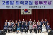 (원투원뉴스) 대전시교육청은 2월 27일, 대전시교육청 대강당에서 퇴직교원 정부포상 대상자와 가족 등이 참석한 가운데 ‘2026년 2월말 퇴직교원 정부포상 전수식’을 개최했다고 밝혔다. 이번 포상 수상자들은 오랜 세월 교직에 몸담으며 대전교육과 국가 교육 발전에 기여한 공로를 인정받았다. 훈격별 수상자는 황조근정훈장 7명, 홍조근정훈장 29명, 녹조근정훈장 19명, 옥조근정훈장 7명, 근정포장 10명, 대통령표창 3명, 교육부장관 표창 5명 등 총 80명이다. 퇴직교원을 대표해 소회를 밝힌 대전문지중학교 박미혜 교장은 정든 교정을 떠나는 아쉬움과 함께 그동안 뜻을 같이한 동료 교육 가족들에게 깊은 감사의 마음을 전했다. 설동호 대전광역시교육감은 “교육에 대한 사랑과 열정으로 국가와 대전교육 발전을 위해 헌신한 선생님들께 존경과 축하의 마음을 전한다”라며 “대전교육가족은 언제나 선생님들의 노고를 기억하고 앞날을 응원할 것”이라고 밝혔다.