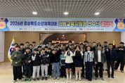 (원투원뉴스) 경상북도의성교육지원청은 3월 16일 의성교육지원청 3층 대회의실에서 2026년 경상북도소년체육대회 참가 선수단 결단식을 개최했다. 이번 결단식에는 대회에 출전하는 학생 선수와 지도자들이 참석해 결의를 다졌으며, 박진구 교육장을 비롯한 교육지원청 관계자와 의성군체육회, 의성군청, 학교장협의회 등 지역 체육·교육 관계자들이 함께 자리해 선수들의 활약을 응원했다. 의성교육지원청 선수단은 육상부 초등 5명과 중등 11명, 씨름부 초등 7명과 중등 7명 등 총 30명의 학생 선수로 구성됐으며, 이번 대회에서 의성을 대표하여 기량을 펼칠 예정이다. 이날 행사에서는 선수 선서와 함께 선수단을 격려하기 위한 격려금 전달식도 진행됐다. 선수 대표인 삼성중학교 김환진 학생과 의성중학교 전탁평 학생은 “올바른 스포츠 정신을 바탕으로 정정당당하게 경기에 임하고 최선을 다하겠다”고 선서하며 대회에서의 선전을 다짐했다. 박진구 교육장은 격려사를 통해 “그동안 흘린 땀과 노력이 이번 대회에서 값진 결실로 이어지길 바라며, 무엇보다 서로를 존중하는 스포츠 정신 속에서 최선을 다해 주길 바란다”며 선