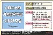 (원투원뉴스) 아산시가 오는 23일부터 2026년 아산시립도서관 겨울방학 특강 수강생을 모집한다. 아산시립도서관 7개관에서 겨울방학을 맞이하여 어린이를 대상으로 70여 개의 다양한 프로그램을 마련했다. 아울러 중앙도서관과 탕정온샘도서관은 청소년 대상 프로그램을, 둔포도서관은 성인 대상 프로그램을 같이 운영할 예정이다. 주요 프로그램으로는 △(중앙) 세상을 보는 눈, 생각을 쓰는 손 △(탕정) 겨울을 담은 웹툰 그리기 △(꿈샘) 내 마음 그림책 나라 △(배방) 꼬물꼬물 풍선공작소 △(월천) 겨울숲 탐험대 △(음봉) 코딩으로 읽는 이야기책 △(둔포) 그림책으로 떠나는 인형극 세상 등이다. 수강 신청은 12월 23일 오전 10시부터 아산시립도서관 누리집을 통해 선착순으로 진행되며, 도서관별 신청일자가 상이하므로 자세한 사항은 누리집 행사 안내를 참고하거나 각 도서관으로 문의하면 된다. 고영이 아산시립도서관장은 “이번 방학특강이 아이들에게 호기심과 창의력을 키우는 뜻깊은 시간이 되길 바란다”며 “도서관이 언제나 친근하고 편안한 배움의 공간이 되도록 노력하겠다”고 전했다.