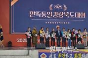 (원투원뉴스) 경상북도는 22일 영주시 풍기인삼문화팝업공원에서 민족통일협의회 경상북도 주관으로 ‘2025 민족통일 경상북도대회’를 개최했다. 행사에는 김진현 경북도 안전행정실장, 배진석 도의회 부의장, 유정근 영주시장권한대행, 도재영 민족통일 중앙협의회 의장, 박종호 민족통일경상북도협의회장, 김추길 민족통일 전남회장을 비롯한 시군지회 회원 700여 명과 풍기인삼축제현장을 찾은 많은 관광객과 어울려 뜻깊은 행사를 했다. 행사는 식전 공연을 시작으로, 한반도 평화를 위한 결의문을 회원들과 함께 낭독하고, 이어서 지역사회 및 통일 안보에 이바지한 우수 유공자들에게 도지사 표창을 비롯한 다양한 상패가 수여되며 행사 분위기를 한층 고조시켰다. 특히, 행사 마지막에는 참가자 전원이 함께 ‘우리의 소원은 통일’을 합창하며, 평화통일의 필요성과 중요성을 다시 한번 되새기는 뜻깊은 시간으로 마무리됐다. 박종호 민족통일 경상북도협의회장은 대회사를 통해 “확고한 국가관과 투철한 사명감을 바탕으로 민족의 염원인 조국의 평화통일을 실현할 수 있도록 도민들의 적극적인 참여와 성원”을 당부했다. 김진현 경북도 안