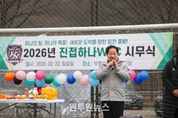 (원투원뉴스) 남양주시는 22일 진접읍 부평리 인조잔디구장에서 진접읍 3개 축구회와 함께 ‘2026년 시무식 및 안전기원제’를 개최했다고 밝혔다. 이번 행사는 △진접FC(회장 이부영) △광릉크낙새FC(회장 신홍근) △하나여성FC(회장 정경화) 등 3개 지역 축구회가 한자리에 모여 새해를 맞아 안전하고 활기찬 축구 활동을 다짐하기 위해 마련됐다. 이날 행사에는 주광덕 남양주시장을 비롯해 지역구 시의원, 진접읍축구협회 회원 등 100여 명이 참석했다. 시무식은 △신년사 △내빈 축사 △안전 기원제 △기념 촬영 순으로 진행됐다. 참석자들은 올 한 해 회원 간의 화합과 부상 없는 경기를 다짐했다. 주광덕 시장은 축사를 통해 “지역의 생활체육 활성화와 건강한 여가문화 조성에 기여해 주신 회원들께 깊이 감사드린다”며 “진접읍 축구가 한 단계 더 도약하는 한 해가 되길 바란다”고 말했다. 이광우 진접읍축구협회장은 “추운 날씨에도 불구하고 참석해 준 분들께 감사드린다”며 “지역 사회의 화합을 도모하고 건강한 에너지를 전파하는 축구협회가 되도록 노력하겠다”고 전했다. 한편, 시는 지난 9일 진접읍 크낙새