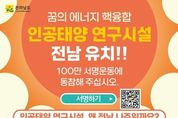 (원투원뉴스) 전라남도 나주시가 인공태양(핵융합) 연구시설 유치를 위한 시민 참여 열기를 높이고자 ‘12만 시민 서명운동’을 본격 추진한다. 이번 서명운동을 통해 전 시민이 한마음으로 뜻을 모아 미래 에너지 산업의 중심도시로 나아가겠다는 의지를 다지고 있다. 나주시는 과학기술정보통신부 공모사업인 ‘핵융합 핵심기술 및 첨단인프라 구축(가칭 인공태양 연구시설)’ 유치를 위해 범시민 서명운동에 돌입했다고 27일 밝혔다. 이번 서명운동은 인공태양 연구시설 유치를 향한 시민 공감대를 확산하고 시민이 직접 참여하는 범시민 캠페인으로 추진된다. 나주의 미래 성장 동력을 시민의 손으로 만들어가자는 취지다. 서명은 웹 기반 서명 플랫폼을 통한 온라인 참여와 읍면동 주민 서명 등 오프라인 참여를 병행한다. 참여 기간은 오는 11월 11일까지이며 10월 27일부터 31일까지는 집중 서명 주간으로 운영하고 대상은 19세 이상 나주 시민, 관내 52개 학교 학생과 교직원, 혁신도시 이전기관 임직원 등 12만 나주 전 시민이다. 시는 포스터, 전단지, 현수막 등 홍보물을 통해 서명운동을