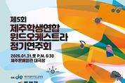 (원투원뉴스) 제주특별자치도교육청이 주최하고 제주학생연합윈드오케스트라가 주관하는 ‘제5회 제주학생연합윈드오케스트라 정기연주회’가 31일 오후 6시 30분 제주문예회관 대극장에서 열린다. 제주학생연합윈드오케스트라는 제주 도내 중·고등학교 재학생들로 구성된 연합 예술단체로 2019년 고등학생 중심의‘제주고교연합 윈드오케스트라 다혼디’로 출범한 뒤 2023년 현재의 명칭으로 변경하며 중학생까지 참여 범위를 확대했다. 현재 도내 중학교 8개교, 고등학교 9개교 등 총 17개 학교에서 모인 60여 명의 학생이 단원으로 활동하며 음악적 역량을 키워가고 있다. 이번 정기연주회는 스승과 제자, 선후배가 음악으로 하나 되는 ‘연결’의 의미를 주제로 마련됐다. 1부 무대에서는 대기고등학교 현민관 교사의 지휘 아래 △머큐리(Mercury) △부드러운 빗속에서(In a Gentle Rain) △아르메니안 댄스 파트1번(Armenian Dances Part 1) 등 웅장한 관악 합주곡이 연주된다. 이어 제주고등학교 최재광 교사가 협연자로 나서 △그라나다(Granada) △뮤지컬 '지킬 앤 하이드'의 ‘지금 이