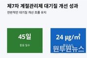(원투원뉴스) 경기도가 지난해 12월부터 올해 3월까지 ‘제7차 미세먼지 계절관리제’를 시행한 결과, 최근 3년간 초미세먼지 평균 농도가 24㎍/㎥ 유지되는 등 안정적인 대기질을 유지하고 있다고 9일 밝혔다. 2019년 12월~2020년 3월 처음 시작한 미세먼지 계절관리제는 고농도 미세먼지가 집중 발생하는 겨울부터 이른 봄철에 배출가스 5등급 차량 운행 제한, 공공부문 차량 2부제, 사업장 및 공사장 관리 강화 등 다양한 미세먼지 저감 대책을 추진하는 것이다. 경기도 보건환경연구원 분석에 따르면 지난해 12월부터 올해 3월 도내 초미세먼지 평균 농도는 24㎍/㎥를 기록했다. 2022년 12월~2023년 3월 28㎍/㎥에서 다음 연도에 24㎍/㎥로 하락했고 올해도 동일한 수준을 유지하고 있다. 특히 호흡기 건강에 직결되는 초미세먼지 ‘좋음’(15㎍/㎥ 이하) 등급 일수는 제도 시행 전인 2018년 12월~2020년 3월 동안 단 11일에 불과했으나 지난해 12월~올해 3월에는 45일로 4배 이상 증가했다. 월별 농도 추이를 살펴보면 지난해 12월 20㎍/㎥를 시작으로 올해 1월에는 전년 동월 대비