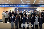 (원투원뉴스) 세종특별자치시사회복지협의회 사회공헌센터는 11일 오후 3시, 세종시 보람종합복지센터 지하 다목적강당에서 ‘제3회 세종시 사회공헌의 날’ 기념식을 성황리에 개최했다. 이번 기념식은 지난 한 해 동안 지역사회와 함께 나눔을 실천해 온 기업·기관·단체·개인의 공로를 격려하고, 세종시 사회공헌 문화 확산의 성과를 공유하는 자리로 마련됐다. 1회 기념식부터 제3회를 맞은 이번 기념식은 외부 예산 지원 없이 협의회가 오직 지역사회 나눔을 확산하겠다는 마음 하나로 준비한 행사다. 임원진과 직원들이 준비 과정에서 흘린 보이지 않는 땀과 헌신이 모여 오늘의 자리가 만들어졌으며, 이러한 진정성 덕분에 사회공헌의 날은 세종을 대표하는 의미 있는 기념식으로 자리매김하고 있다. 이날 기념식에는 세종시의회 임채성 의장, 이현정 의원, 김재형 의원, 김영현 의원, 김현옥 의원, 김충식 의원, 최원석 의원, 김현미 의원, 세종시 이영옥 보건복지국장, 충청대학교 송승호 총장, 세종시장애인체육회 임규모 사무처장 등을 비롯해 지역 사회복지기관 관계자, 기업·기관 대표 등 80여명이 참석해 자리를 빛냈다.
