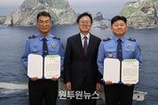 (원투원뉴스) 강원도립대학교는 11월 5일 오전 10시, 동해지방해양경찰청에서 조동희 경감과 김호관 경위에게 감사장을 수여했다. 이번 감사장 수여는 강원도립대 소속 성인학습자 학생의 생명을 구한 해양 경찰관의 의로운 행동에 대한 감사의 뜻을 전하기 위해 마련됐다. 10월 13일 속초로 훈련을 가던 동해지방해양경찰청 소속 조동희 경감과 김호관 경위는 빗길에 미끄러져 차량이 도로에서 전복되는 사고 현장을 목격하자 즉시 구조에 나섰다. 조동희 경감은 빗속에서 직접 차량 위로 올라가 문을 열고 운전자를 구조했으며, 김호관 경위는 폭우가 쏟아지는 가운데 약 1시간 동안 주변 차량을 통제하며 2차 사고를 예방했다. 해당 운전자는 강원도립대에 재학 중인 만학도로 수업을 마치고 하교 중이었다. 사고 처리가 끝난 뒤 두 해양 경찰관은 조용히 현장을 떠났으며, 이들의 선행은 사고를 당한 강원도립대 만학도의 아들이 인터넷 커뮤니티에 글을 올리면서 뒤늦게 알려졌다. 최종균 총장은 “두 경찰분은 폭우 속 위험한 사고 현장에서 투철한 사명감과 희생정신으로 위험에 처한 본교 학생의 소중한 생명을 구했