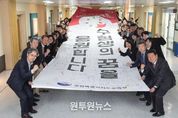 (원투원뉴스) 강원특별자치도교육청은 2026학년도 대학수학능력시험을 15일 앞둔 10월 29일 오전, 도교육청 청사에서 신경호 교육감과 직원들이 함께하는 ‘수능 응원 행사’를 진행했다고 밝혔다. 이번 행사는 2026학년도 수능에 응시하는 도내 수험생들을 격려하기 위해 마련됐다. 대형 수능 펼침막에 신경호 교육감의 응원 메시지 작성을 시작으로, 도교육청 직원들이 한마음으로 수험생들을 위한 응원 문구를 직접 적으며 한마음으로 격려의 뜻을 전했다. 수험생들의 합격을 기원하는 메시지로 가득 채워진 대형 펼침막은 10월 29일부터 수능을 치르는 11월 13일까지 청사 외벽에 게시된다. 신경호 교육감은 “수능이 보름 앞으로 다가오면서 긴장하고 있을 수험생들이 최선을 다해 준비한 만큼 실력을 최대한 발휘하길 바란다”며 “시험장 학교의 철저한 점검과 수험생을 위한 다각적인 지원을 통해 편안하고 안정된 환경에서 시험을 치를 수 있도록 최선을 다하겠다”고 말했다.